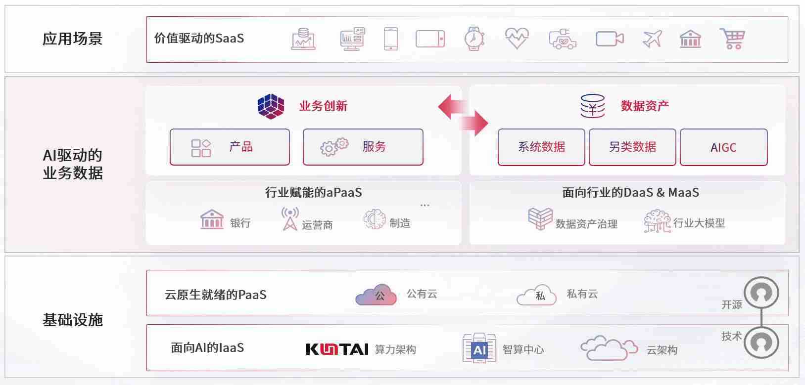 数字时代,,围绕企业数字化转型的关键要素,,,,J9国际站备用数码开创性的提出数云融合战略和技术体系框架,,,着力在云原生、、数字原生、、、AI原生和信创产业上架构产品和服务能力,,,,为处在不同数字化转型阶段的快消零售、、、汽车、、、金融、、、医疗、、、政企、、教育、、、运营商等行业客户提供泛在的敏捷IT能力和融合的数据驱动能力,,,,构建跨界融合创新的数字业务场景和新业务模式,,,助力企业级客户建立面向未来的核心能力和竞争优势,,全面推动社会的数字化、、、智能化转型升级。。。。